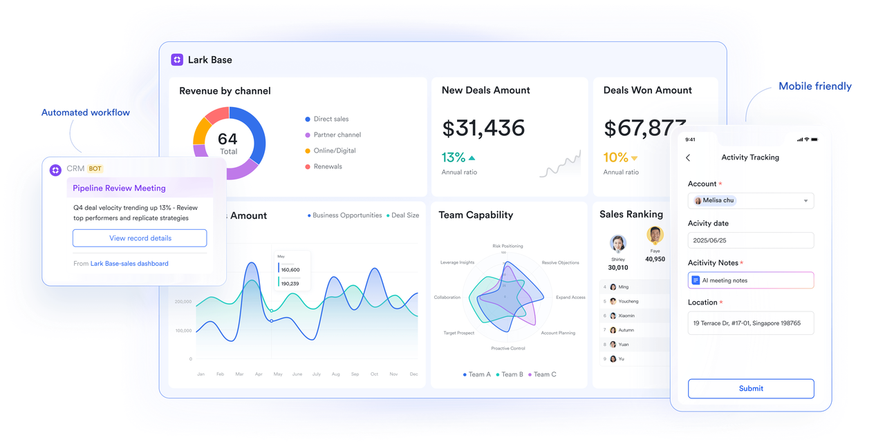 For scaling innovation, you need structure, and Lark Base creates the structure that gives life to unstructured ideas and makes them organized projects. For a lot of organizations, Lark works in more than just a data repository - it can become your CRM app, information hub, or effective management tool that guarantees ideas, feedback, and project information are captured thoughtfully so they can be contextually linked and actioned later.